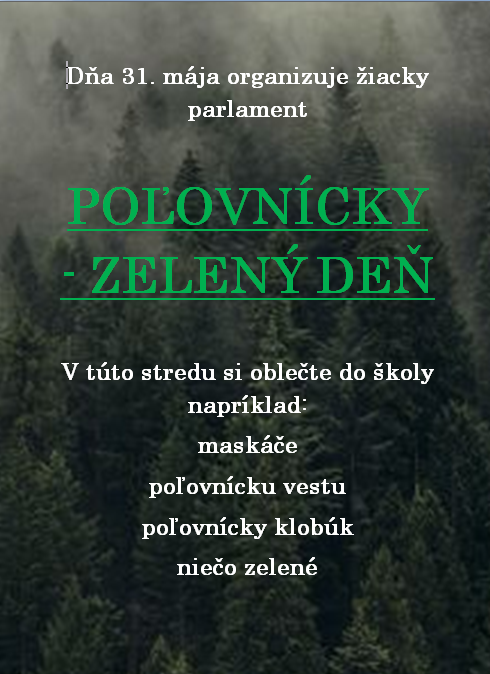 Žiacky parlament si pripravil ,, POĽOVNÍCKY – ZELENÝ DEŇ“ pre svojich spolužiakov.